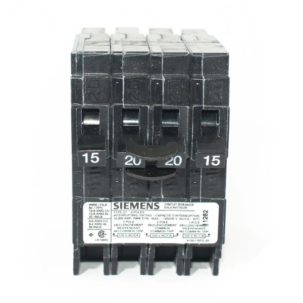 | Amperage Rating: | 15 A (x2 single-pole), 20 A (x1 two-pole) |