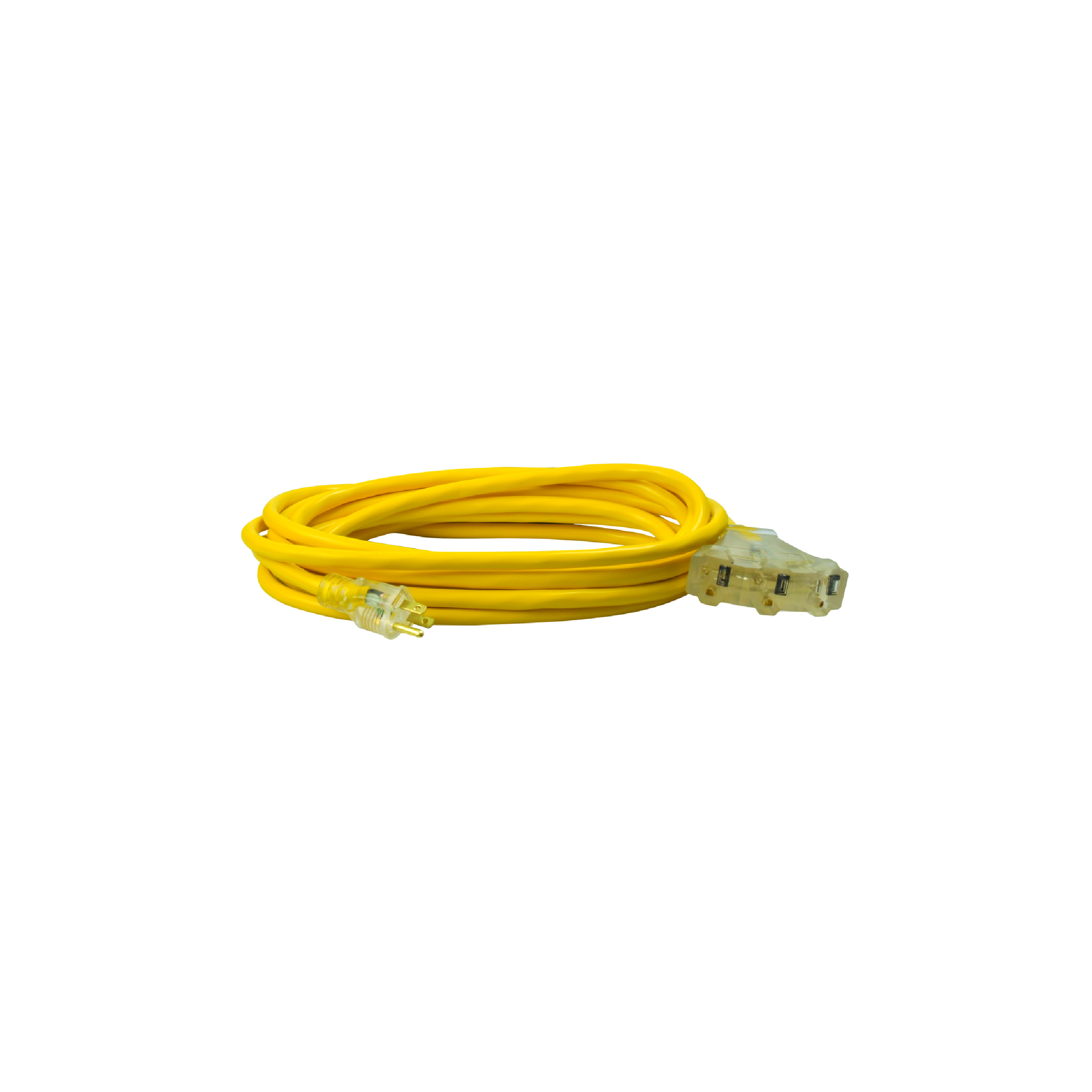 This outdoor heavy-duty extension cord is engineered for durability, safety, and high performance. Rated at 15 Amps, 125 Volts, and 1875 Watts, it is ideal for powering heavy-duty tools and equipment. The highly visible bright jacket enhances safety and prevents loss on job sites, while the extra-durable construction ensures long-lasting use. Designed to withstand the elements, the waterproof jacket protects against moisture, abrasion, and sunlight, making this cord perfect for demanding outdoor applications.