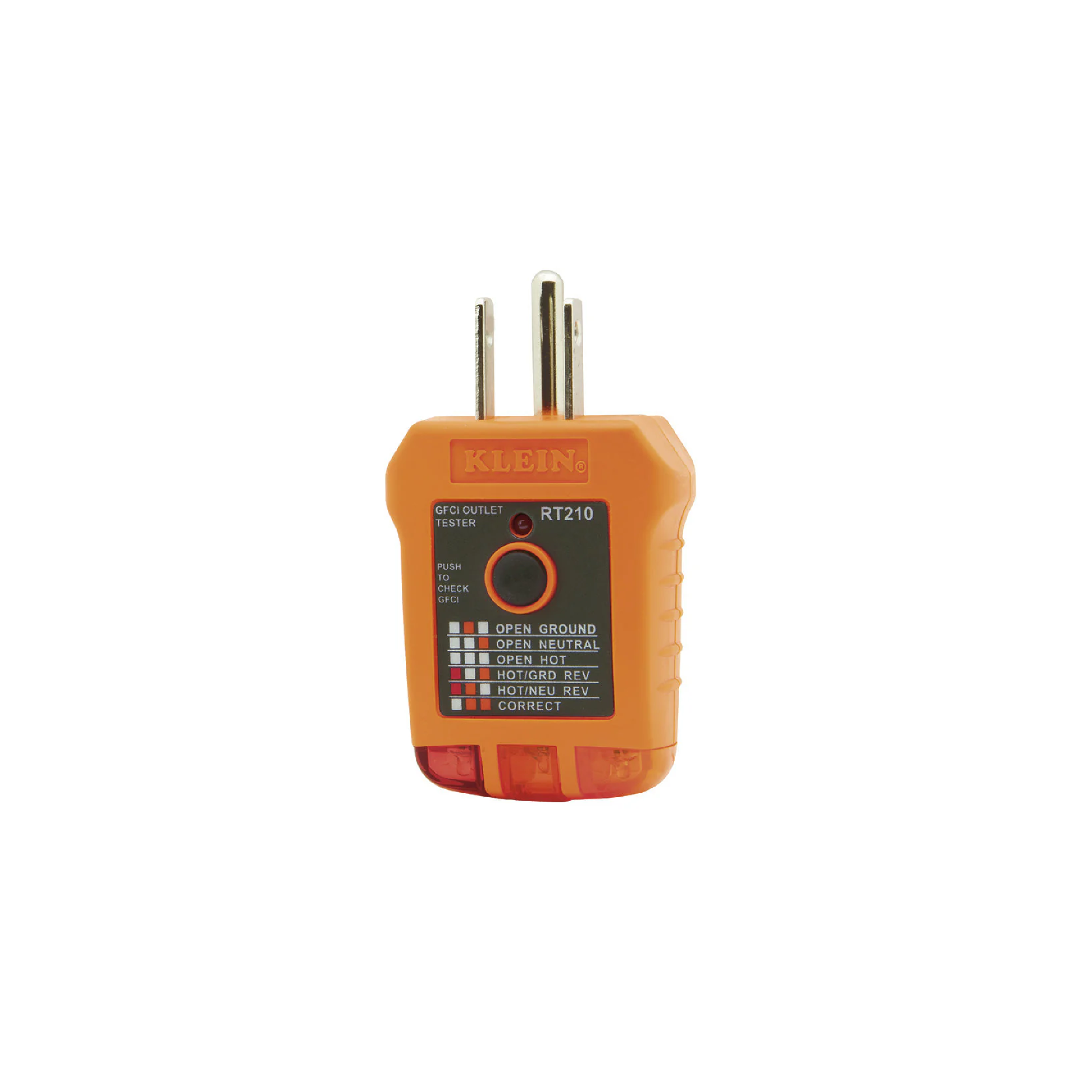 Klein Tools Receptacle Testers are designed to detect the most common wiring problems in standard and GFCI receptacles. A convenient chart on the tester helps determine wiring condition in outlet, based on lights results. Conditions indicated: open ground, reverse polarity, open hot, open neutral, hot/ground reversed.