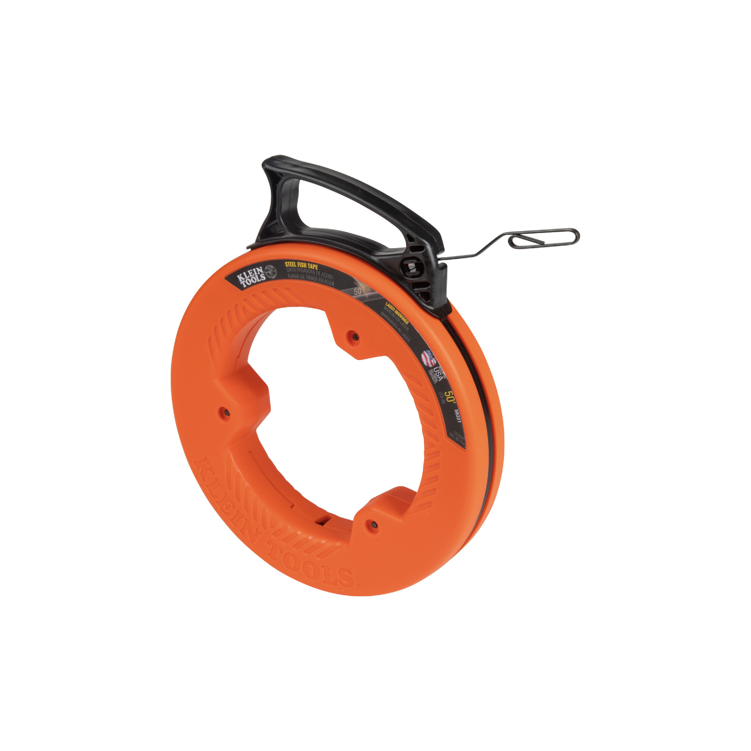 The Klein Tools’ 120-Foot, High-Carbon Steel Fish Tape is perfect for wire runs associated with commercial, residential and voice-data-video installations. The optimized housing and handle design decreases payout effort and reduces binding. A multiple-position handle allows for a firm, steady grip as you pull or rewind the tape. The unique interior case shape combines the leverage of square cases and the comfort of round cases, which makes rewinding tape after a long run easier. The tape features laser-etched descending markings placed at every foot. These markings allow you to accurately measure the depth of conduit runs and determine the amount of tape left to pay out.