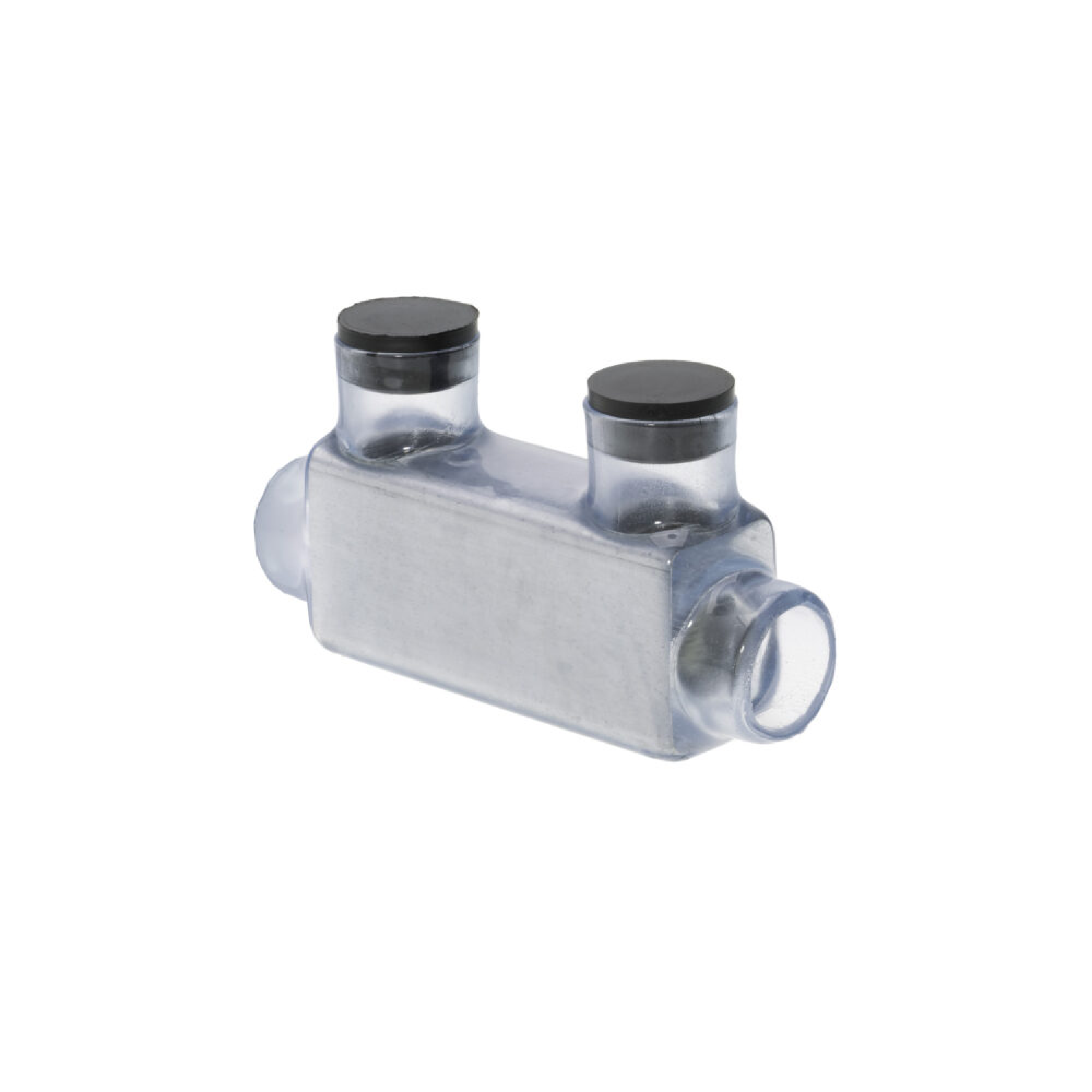 Polaris Vision Tap Multi-Tap Connectors create secure, reliable connections between multiple conductors with a transparent, rounded design and a chemical-resistant insulation coating. Installation is quick and straightforward using a hex key and torque wrench—no additional cover or taping required. The clear exterior allows users to visually confirm conductor placement for maximum accuracy and connection security, and the connectors are suitable for use on the line side of service equipment in accordance with NEC Article 230.46. In-line wire entry ports accommodate 1/0 to 14 AWG conductors, enabling fast, secure two-conductor connections. Ergonomic rounded corners and a smooth plastisol-insulated exterior provide a comfortable grip, while removable plugs protect each port and set screw from debris, moisture, and contaminants. Both in-line entry ports are pre-filled with oxide inhibitor gel to prevent corrosion and ensure low-contact resistance, enhancing long-term performance.